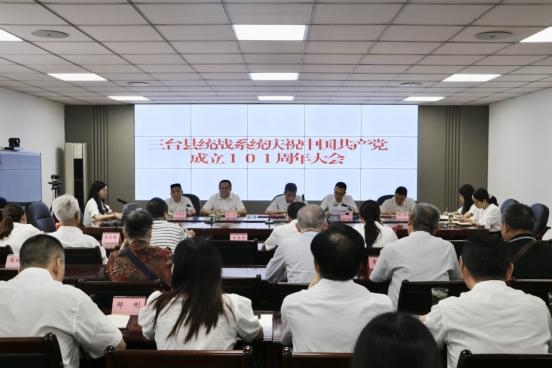 6月30日,三台县委统战部召开庆祝中国共产党成立101周年大会。县委常委、统战部部长文远参加会议并作党课报告,统战系统全体党员参加会议。