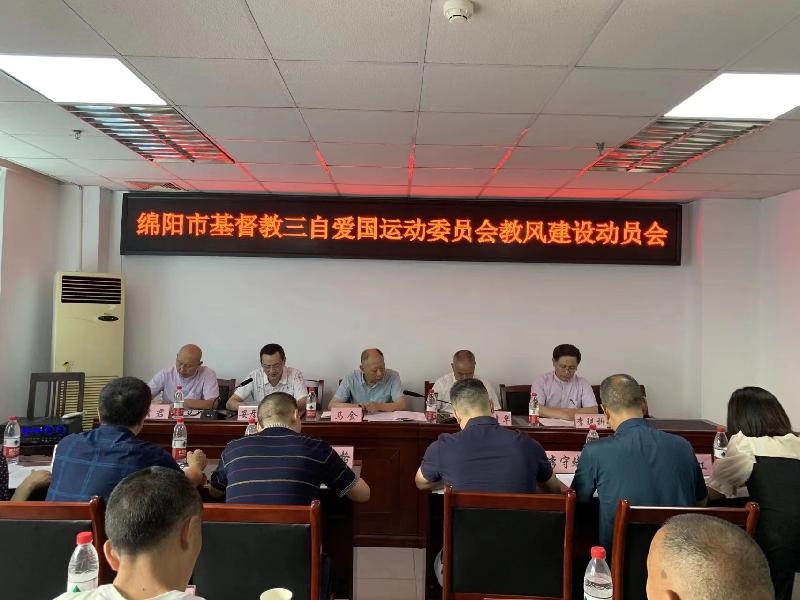 7月5日,绵阳市基督教爰国会召开教风年动员会,传达学习全国、全省、全市宗教工作会议精神,省十二次党代会精神,学习宗教场所财务管理办法、互联网宗教信息服务管理办法,发出关于崇俭戒奢共同倡议书,并对安全等工作进行安排部署。四川省基督教三自爱国运动委员会主席饶建华出席会议并讲话。