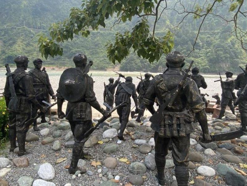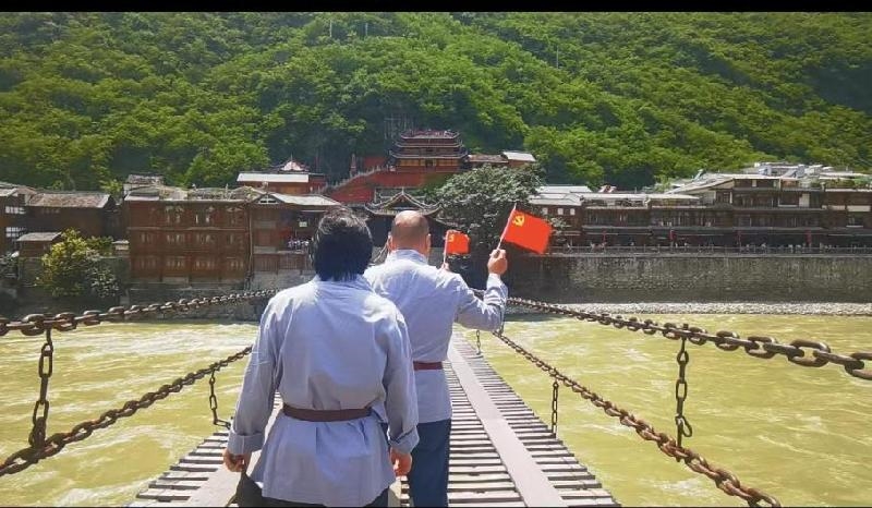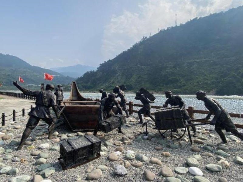 在大渡河边,一艘艘铜塑渡船再现了当年人民群众帮红军渡江的军民鱼水情故事,面对高耸肃立的山峰,波涛汹涌的大渡河,大家心中对革命先烈的敬畏之情油然而生。“红军不怕远征难,万水千山只等闲······”伴随着一首《七律长征》结束了本次的红色之行。