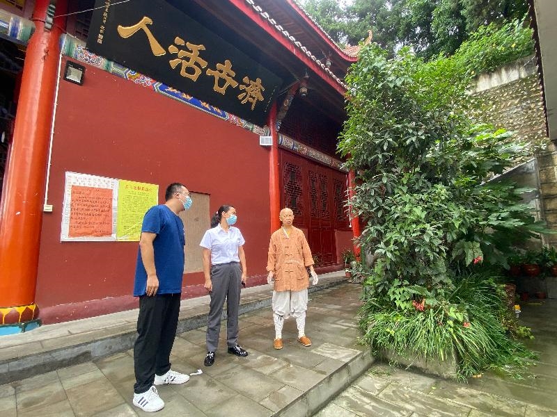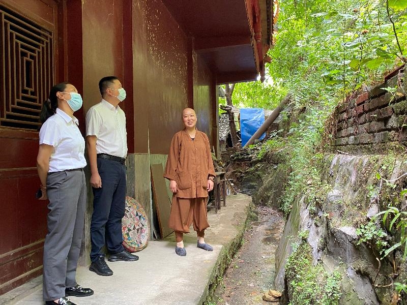 7月22日,涪城区委常委、统战部部长、区总工会主席董静前往白衣庵、大佛寺、华严寺、南垭庙等开放宗教场所,督导防汛减灾、疫情防控、建筑、消防、食品卫生等安全工作。