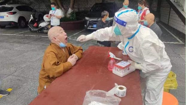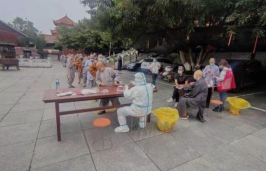 “镇街”突出属地责任。指导宗教活动场所执行“双暂停”,落实全员核酸检测。监督宗教场所加大对教职人员、居士的排查力度。同时,督促各场所严格管控外出人员,加强人员去向和接触史的追溯,建立人员台账及出入登记。为确保教职人员应检尽检,城郊街道在僧众较多的罗汉寺设置临时核酸检测点,累计采样400余人次。