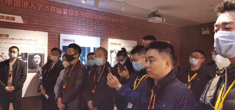 在中国两弹城参观, 学员们集中观看了爱国主义情景教育片《英雄的丰碑》,聆听了老一辈科学家们“干惊天动地事、做隐姓埋名人”感人故事。大家被老一辈科学家们“热爱祖国、无私奉献、自力更生、艰苦奋斗、大力协同、勇于攀登”的“两弹一星”精神和感人故事深深感染,在邓稼先旧居前整齐列队,举行缅怀仪式,向邓稼先铜像敬献鲜花。大家纷纷表示,将高举爱国主义旗帜,大力弘扬和传承“两弹一星”精神,以实现中华民族伟大复兴为己任,增强做中国人的志气、骨气、底气,不负时代,不负韶华。