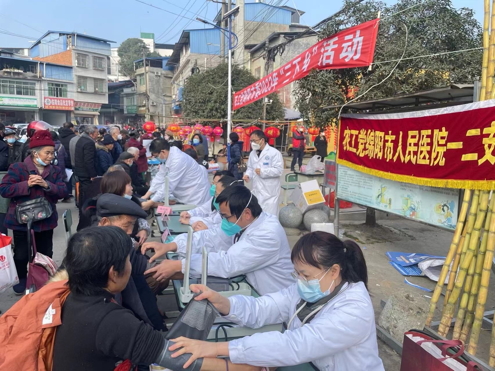 现场,来自农工党绵阳市中医医院、绵阳市人民医院、江油市人民医院、江油市中医医院支部、江油医卫支部、江油长钢支部的农工党员医疗专家们热情地为群众进行义务诊疗,细心讲解疾病预防知识,为有需求群众开展免费测血糖、量血压并分发健康宣传手册等。全国名老中医药专家沈其霖的诊位前排起了长龙,呼吸、消化、脾胃、妇产、泌尿等各科问题老乡在现场都找到了专家诊治,不时有拿到义诊处方的老年人激动万分地向农工党的医卫专家们致谢。江油水电支部、江油科技支部的农业、水务专家为大家宣讲农业种养科技,普及农业用药安全,一氧化碳中毒防控知识。谢林川、肖敏等向群众免费发放了福字和窗花,给当地群众送去了温暖以及新年的浓浓祝福。何南踊等农工党前进书画院的艺术家们现场挥毫泼墨,为乡亲们书写春联,引得人头攒动、热闹非凡。一幅幅春联书写出农工党党员对群众新年的美好祝福,描绘出群众对美好生活的憧憬和期待。