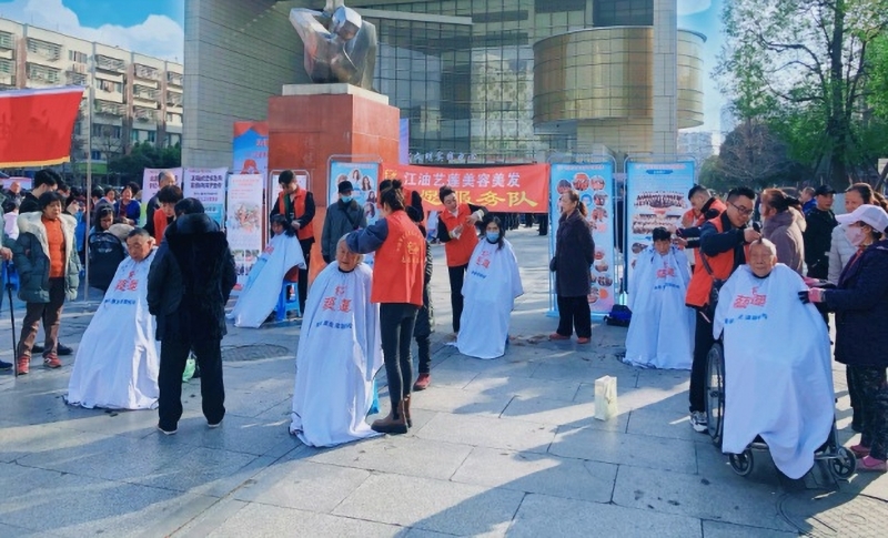 3月是学雷锋月。为传承和弘扬中华文明礼仪的传统美德,倡导雷锋助人为乐、勇于奉献的精神,江油市人大代表、民建江油基层委员会会员、艺莲美容美发董事长李玉莲率江油艺莲美业志愿服务队,先后深入江油市党群服务中心、江油大剧院广场、画屏社区、太白社区等地,为广大市民开展义剪活动。