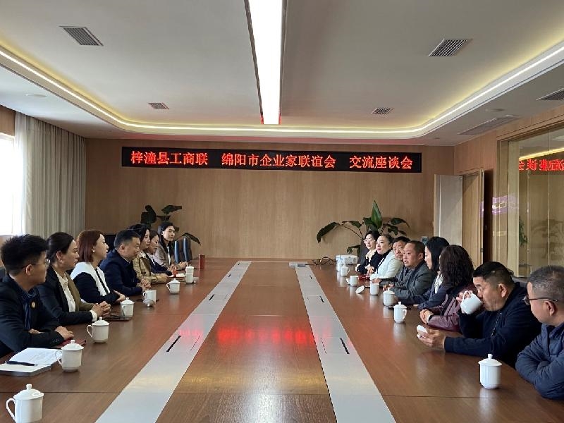在交流座谈会上,绵阳企业家联谊会会长、四川英萃实业有限责任公司董事长陈仁介绍了会员企业的基本情况和可以交流合作的项目。县工商联党组书记张涛介绍了梓潼县民营经济的规模、重点企业、主要产业等相关情况。双方表示,搭建平台、整合资源、服务会员、促进交流是商会的办会宗旨。梓潼县工商联(梓潼县商会)与绵阳市企业家联谊会愿意开展更多的沟通合作,互相推介会员,搭建好绵梓企业家交流平台,共同为两地民营经济的高质量发展贡献力量。