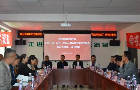 4月23日,致公党绵阳市工委开展纪念“五一口号”发布75周年暨书香机关建设“致公·悦读汇”读书活动。绵阳市政协副主席、致公党绵阳市工委主委田荣华出席活动并讲话,中共绵阳市委统战部二级调研员冯斌受邀参加活动。致公党绵阳市工委副主委何显兵、赵利蓉参加活动。