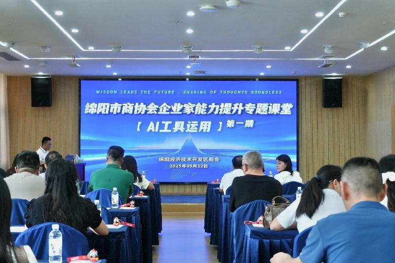 9月12日下午,绵阳经开区商会企业家能力提升专题课堂(AI应用专题)第一期正式开讲。课堂以“用AI工具重构互联网营销”为主题,以“实战导向”为特色,通过全程动手练、解决真问题,为企业家提供了从工具认知到场景落地的全链路解决方案,吸引100余位会员企业家参加。