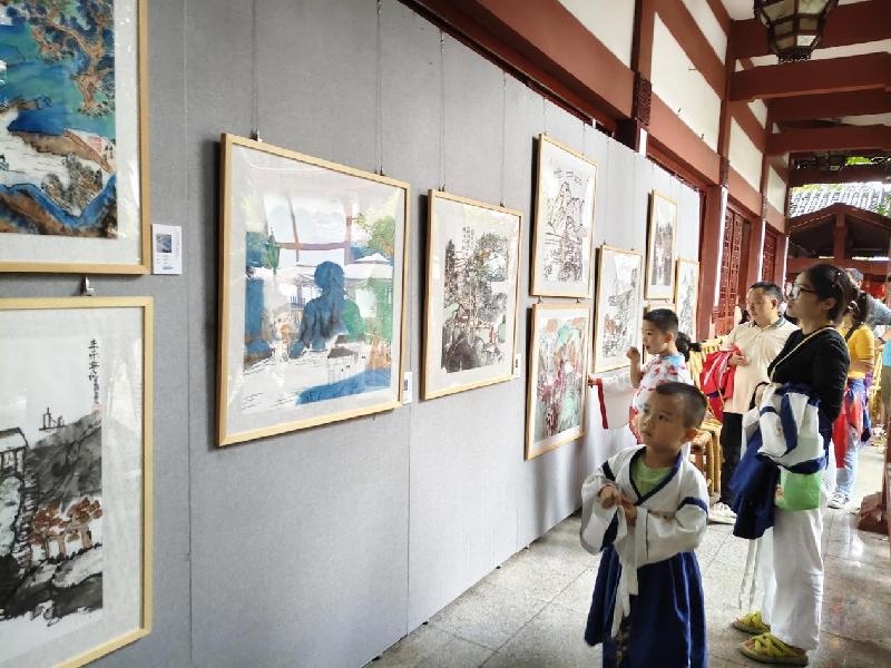 活动期间还展出了涪城区青少年欧阳修主题画作,青年天马行空的想象和欧公文韵的凝聚于一幅幅精美的画作上,吸引了众多群众驻足观赏。