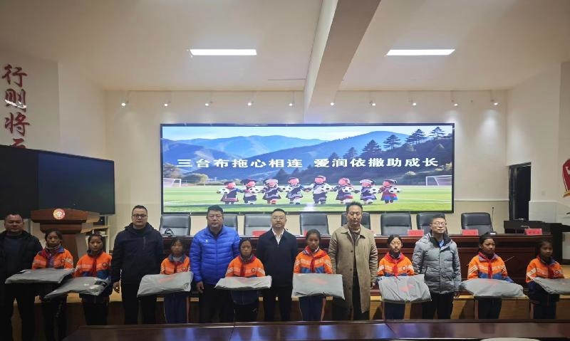 捐赠仪式上,在三台县的统筹组织下,四川安吉纳体育用品有限公司积极响应,向依撒小学足球队队员捐赠1388套总价值26万余元的足球装备。作为此次捐赠的重要参与力量,安吉纳企业的爱心之举不仅为布拖县依撒小学的学子送去了实实在在的运动保障,更以企业担当搭建起民族地区交流的桥梁,为促进两地民族团结进步、推动各民族交流互融注入了温暖力量。这种企业主动参与对口支援的行动,让爱心跨越地域阻隔,成为增进民族情感的纽带,生动诠释了各民族“守望相助、手足情深”的深厚情谊。