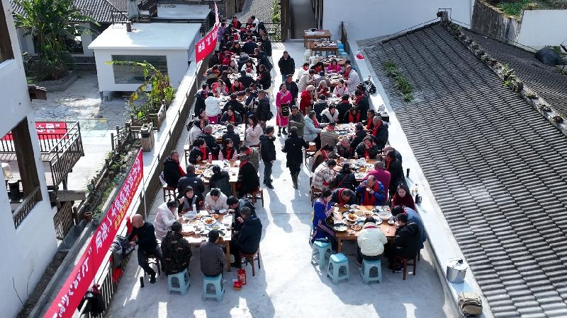 美食出锅,庖汤美食宴正式开席。以平武粮食猪为核心烹制的庖汤、腊肉、香肠,搭配本地野菜等特色食材,香气四溢。自媒体达人同步开启线上直播,向网友展示美食制作过程与宴会盛况。直播过程中,达人细致讲解猪肉品质亮点,实时互动答疑。