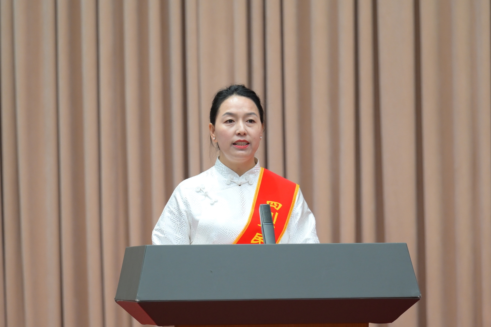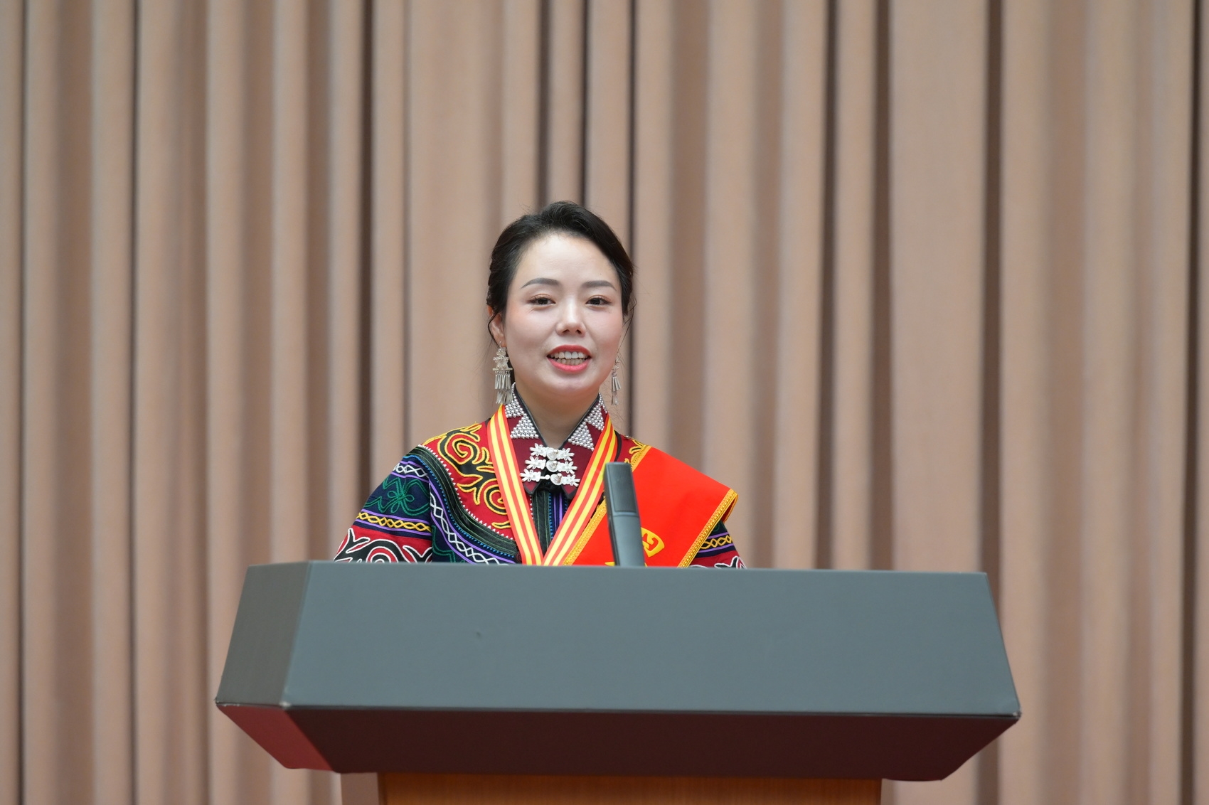 凉山州冕宁县彝海结盟纪念馆讲解员张燕,作为四川省民族团结进步模范个人代表在会上作交流发言。