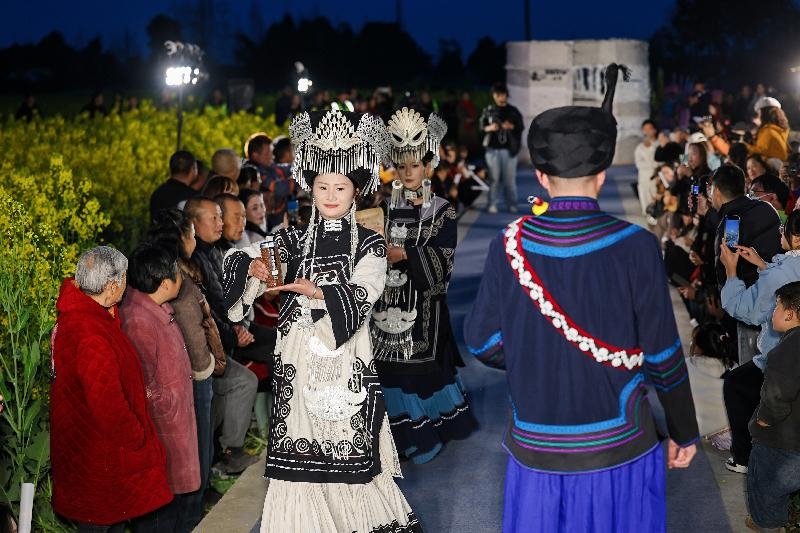 3月7日,德阳市旌阳区德新镇长江村在 2026「菜花纪」春日艺术生活季首场「长江纪・村秀」——“非遗之美·巾帼传承”主题活动中,特别邀请了凉山州越西县的彝族同胞走进千亩油菜花田,共赴一场跨越山海的文化之约,以乡村舞台唱响了民族团结主旋律。