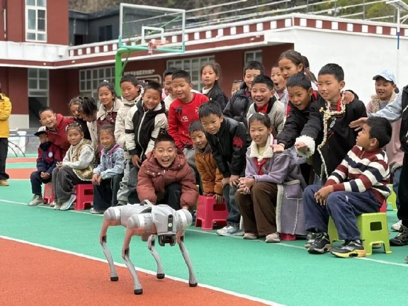 活动聚焦民族地区青少年校外教育实际需求,结合青少年成长特点,精心设计寓教于乐的课程内容,将优质教育和少先队组织的温暖送到高原校园。在学校操场上,一场精彩的科技秀瞬间点燃了孩子们的热情:四足机器狗灵活翻滚,穿越无人机空中盘旋,水火箭呼啸升空……科学普及课上,辅导员生动讲解人工智能、空气动力学原理,介绍我国航天成就,引来孩子们阵阵惊叹,科技报国的种子悄然种下。书法课堂上,老师从握笔姿势教起,带领孩子们学习书法基础技法,书写“德润黑水,阳暖藏乡”的书签,在一笔一画中感受汉字之美,以笔墨传递温情,以文化浸润心灵。漆扇制作与蒙古族舞蹈课程也让孩子们沉浸其中,文化自信心与民族自豪感油然而生。这份跨越山海的“艺术相遇”,让高原课堂因多元文化滋养而格外温暖,让各族少年情感相依的纽带更加牢固。