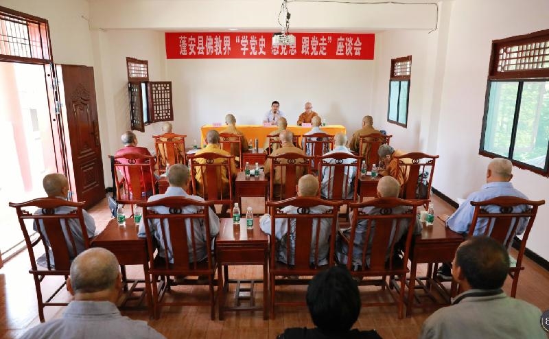 5月9日,蓬安县佛教界召开“学党史、感党恩、跟党走”座谈会,县民宗局、县佛协、各宗教活动场所代表共计20余人参加。