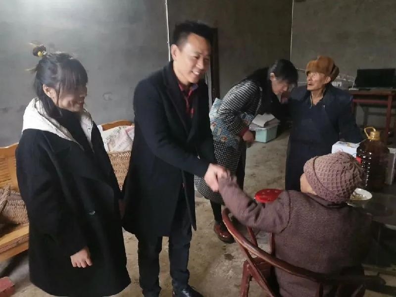 “黄大爷,新的一年即将到来,希望您身体健康,全家平平安安,以后有什么需要,可以通过村上联系我们。”一行人先来到低保老人黄有华家,黄有华今年86岁,与79岁的妻子曾素琼共同生活。两位老人育有两儿一女,子女均在新疆务工,老人留守在家,靠养鸡和种植油菜、红薯为生。党员们为老人送上大米、食用油、牛奶等慰问品,并组织年轻党员帮老人打扫屋内清洁卫生、清扫院中鸡粪、清理落叶等。随后大家和两位老人拉起家常,询问二人的身体状况和饮食起居情况,得知老人身体还算硬朗,平时还能种植少许农作物,嘱咐老人量力而行,保重身体,保持身心愉悦,享受生活。临走时,曾素琼激动地一一握住党员们的手说:“国家的政策好,一直记得我们,我们一定好好生活。”