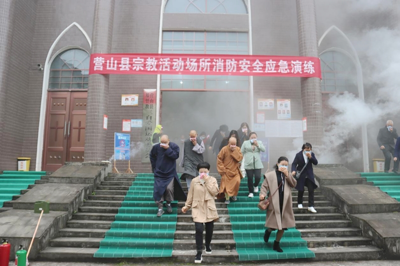 4月18日,营山县召开全县宗教领域工作推进会,通过“实地演练+会场学习”的方式开展消防演练、法制培训。县委统战部(县民宗局)全体干部,各宗教团体、宗教活动场所班子成员,全体教职人员约60余人参加会议。
