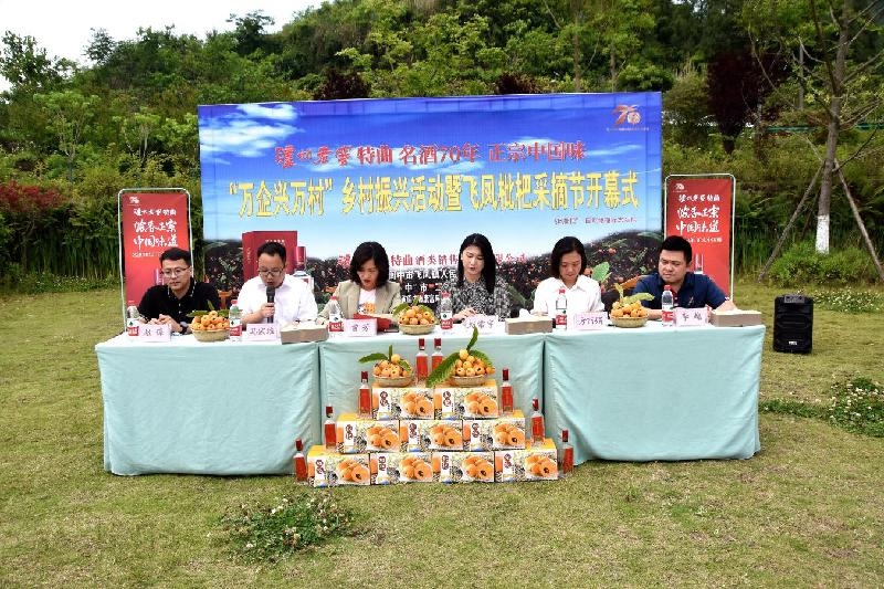 近日,阆中市工商联、飞凤镇人民政府、阆中市康富来糖酒有限公司联合承办的“万企兴万村”乡村振兴暨飞凤枇杷采摘节活动在飞凤桥亭村隆重举行。市工商联主席曹芳,飞凤镇党委书记方丽娟,阆中市康富来糖酒有限公司董事长赵锋等出席活动仪式。