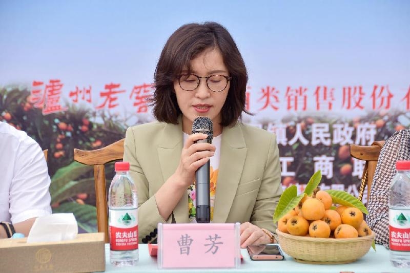 活动仪式上,曹芳对泸州老窖特曲酒类销售股份有限公司、阆中市康富来糖酒有限公司到飞凤来采摘1万斤枇杷的消费帮扶举措表示感谢。她讲到,在今后还将带领更多的会员企业参与消费帮扶,以此促进农民稳定增收,助力促进乡村全面振兴。
