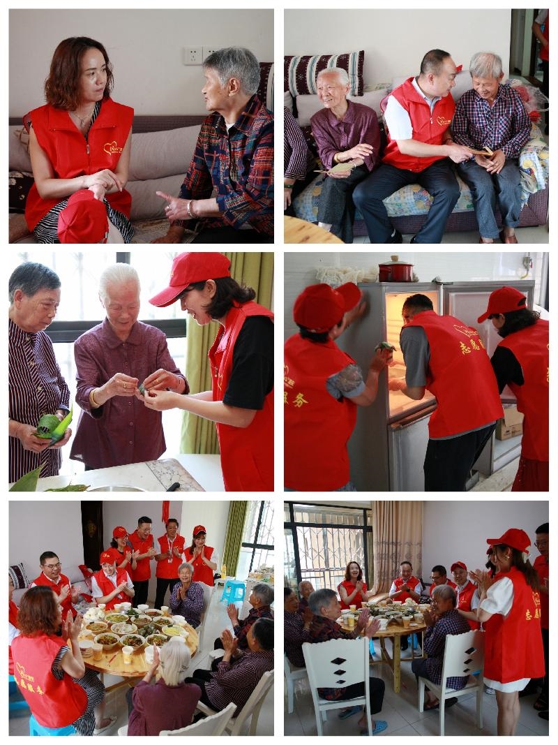 活动当天上午,活动组一行手提粽叶、糯米和肉类蔬菜,邀请同小区其他三名老人一起来到空巢老人的家中,一起过端午、共进餐。一进门,活动组一行就分工明确,有的和老年人一起包粽子、分享快乐事,增进干群关系;有的和老年人拉家常,倾听老年人讲述他们那个年代的艰辛与现在生活的美好;有的在厨房和老年人一起洗菜切菜,气氛融洽;还有的志愿者帮老年人把冰箱内部死角进行了全方位的清洗。午餐时,活动组一行为几位耄耋老人唱了一首《祝你平安》,当唱到“你永远都幸福,是我最大的心愿”时,几位老人留下了感动的泪水,随后,老人们为大家唱了他们那个年代的《入团歌》《参军歌》,活动在欢歌笑语中结束。县委统战部、县新联会还为几位耄耋老人送上了节日慰问金。