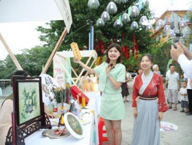 6月9日下午,致公党高坪总支主委邓颖晴带领部分致公党员来到白塔耍都非遗直播现场,为“非遗购物节”高坪专场宣传助力。
