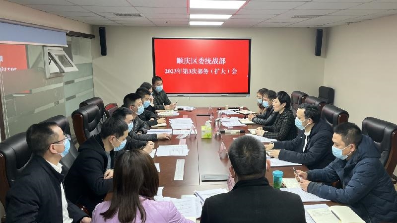 近日,顺庆区委统战部召开部务(扩大)会议,传达学习全市统战部长会议、全区组织宣传统战政法群团工作会议等会议精神,研究部署贯彻意见。区委常委、统战部部长田丽主持会议并讲话。
