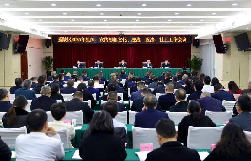 3月21日下午,嘉陵区组织、宣传思想文化、统战、政法、社会工作会议召开。会议坚持以习近平新时代中国特色社会主义思想为指导,认真贯彻落实国省市相关会议精神和省委、市委主要领导批示精神,总结经验、分析形势,安排2025年工作任务。区委书记张青松主持会议并讲话。