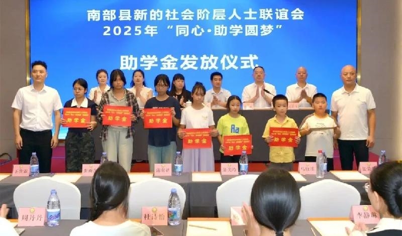 8月7日,南部县新的社会阶层人士联谊会成功举办2025年“同心·助学圆梦”助学金发放仪式,为寒门学子送去温暖与希望。县委统战部常务副部长李翼宏,县教体局党委委员张莘晤受邀出席并讲话。县新联会班子成员、捐资会员、爱心企业代表,以及受助学生和亲属共同参与了此次活动。仪式由县新联会会长许甫主持。