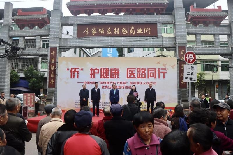 10月29日上午,在顺庆区李家镇特色锅盔商业街,“侨”护健康,医路同行——中国侨联“侨界医疗队下基层”走进顺庆义诊活动暨宪法侨法宣传活动在此启动。市侨联党组书记、主席张德兵宣布活动启动;顺庆区委常委、统战部部长朱静出席并讲话。