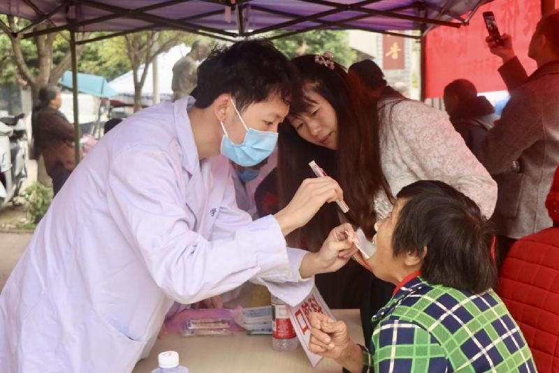 仪式结束后,各项服务迅速开展。工作人员向现场群众发放活动手册,清晰指引服务流程,引导大家有序参与,确保每位有需求的群众都能高效享受服务。在义诊区,来自口腔科、康复科的医疗团队各司其职,耐心接待每一位就诊群众。他们细致询问病情、细致检查身体、开具诊疗方案,针对颈肩腰腿痛等问题现场开展康复理疗。同时,工作团队还为群众发放爱心健康包,将健康关怀实实在在送到手中。
