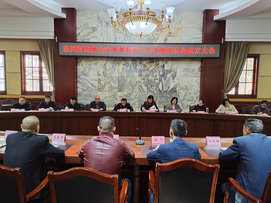 东兴区民营企业商事纠纷调解委员会是内江市首家挂牌成立的专业民营企业商事纠纷调解机构,首批调解员由东兴区工商联机关干部、工商联(商会)中具有法律、金融、税务等专业知识的会员、法律服务所专业工作者等组成。下一步,还将与区政府各职能部门、公检法等执法机构共同研究出台促进商事纠纷人民调解委员会工作健康有序开展的相关指导意见、具体措施,保障调委会工作得以顺畅运作。