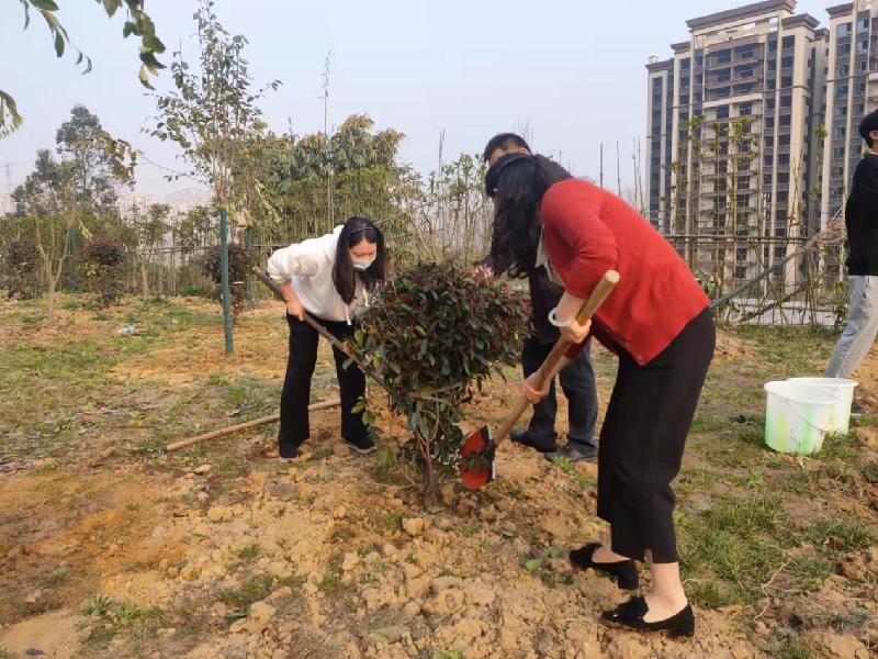 到达植树现场后,在农工民主党资中总支主委李玲的带领下,党员们热情饱满,干劲十足,分工协作,挖坑、放苗、培土、浇水等各个环节衔接有序、配合默契。在党员们的共同努力下,一颗颗新培植的小树苗在春日里展现出勃勃生机。