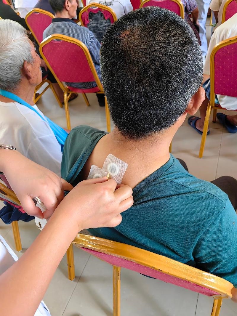 在贴敷过程中,医护人员详细询问每位老年朋友的现病史,再结合既往病史,综合辨证论治进行对应的药物贴敷,以提高他们机体免疫力,有效控制和减轻病情。同时医护人员还向老年朋友们开展了测试血压、耳穴压豆治疗和普及健康知识讲座等。活动当天,约有50余名老年朋友接受了贴敷及中医药诊疗咨询服务。
