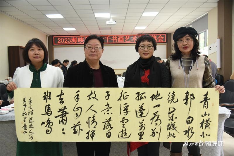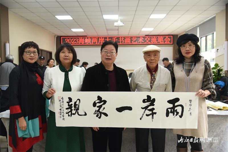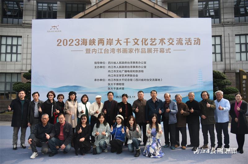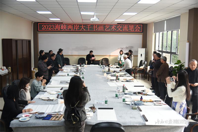 11月23日,2023海峡两岸大千书画艺术交流笔会在张大千美术馆举行,两岸20余名书画家欢聚一堂,用笔墨共绘两岸一家亲。