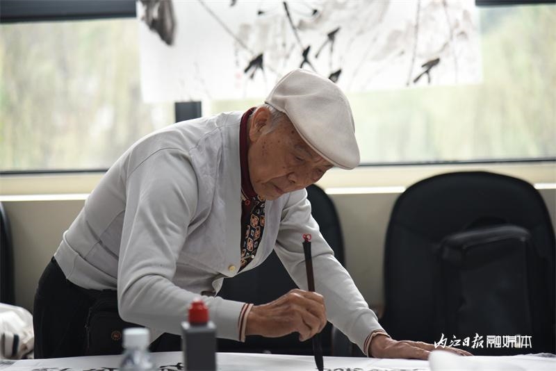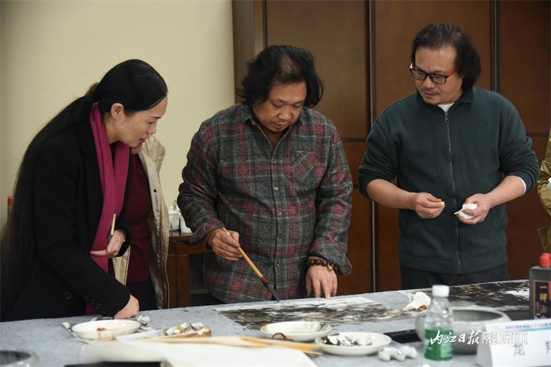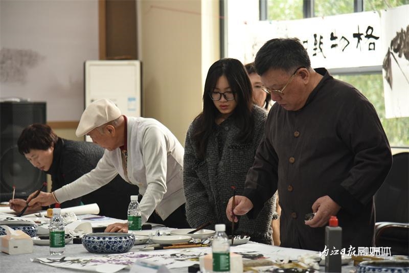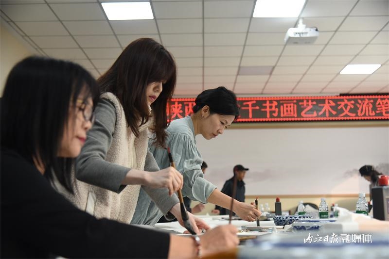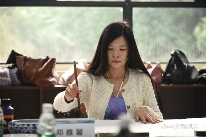 参与笔会的书画艺术家涵盖了老中青,有的是第一次来内江,有的多次到内江参加文化活动。持续不断的文化往来,让两岸交流得到了接续传递,友谊更加深厚。大家一边创作,一边交流,互相学习,会场弥漫着浓浓墨香。