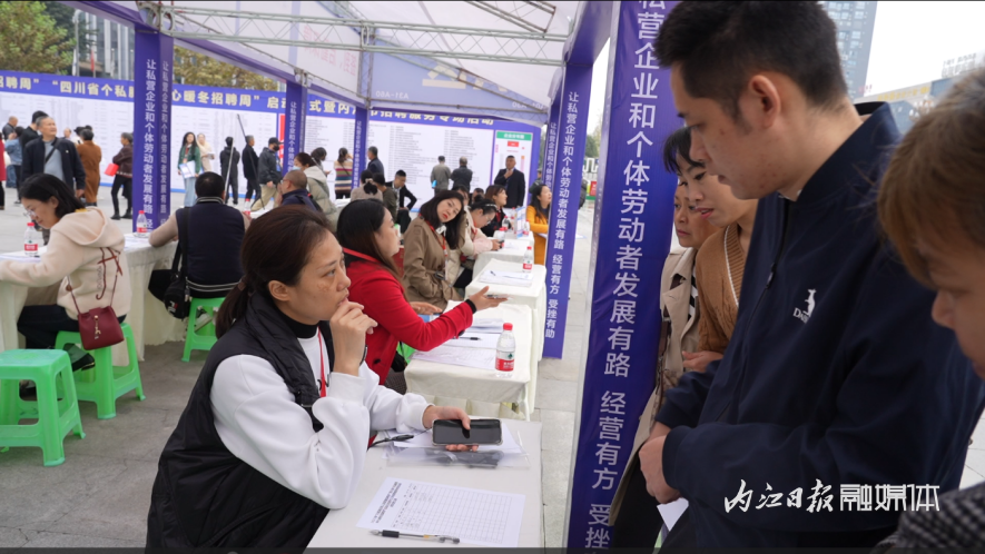 11月28日,内江市举办“川渝退役军人及军属招聘周”“四川省个私服务中心暖冬招聘周”暨内江市招聘服务专场活动。