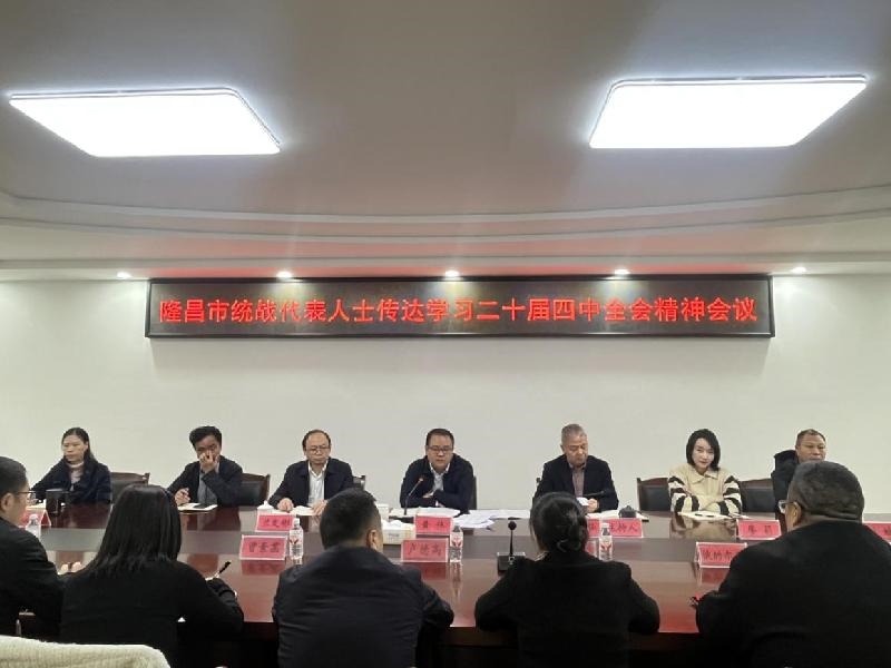 会上,市委统战部常务副部长罗显华传达学习了党的二十届四中全会精神以及省委常委会(扩大)会议精神、内江市委常委会(扩大)会议精神、隆昌市委常委会(扩大)会议精神,系统解读了党的二十届四中全会关于“完善党的领导制度体系”“推进国家治理现代化”等核心内容,重点阐释了全会对统一战线工作的新要求。