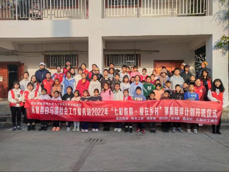 为巩固“双减”工作成果,探索构建假期家、校、社“三位一体”协同育人机制,保障广大中小学生度过一个平安愉快、温馨祥和的假期。2022年1月24日,米易县乐阳社工协会会同县民政局、团县委、县妇联、白马镇政府、白马镇社工站、高龙村村委会举办的“七彩假期·爱在乡村”寒假陪伴计划公益班在高龙村“童梦驿站”正式开班。