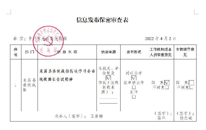 4月1日,米易县委统战部召开专题学习会,传达学习全市统战部长会议精神,安排部署贯彻落实相关工作。县委统战部常务副部长杨元斌主持会议,县委统战部(县民宗局)、县工商联全体干部职工参加会议。