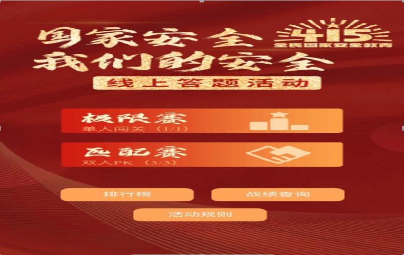 二是参与答题活动。组织县委统战部(县民宗局)全体干部职工参与“国家安全我们的安全”线上答题活动,通过答题的方式巩固国家安全知识,增强防范和抵御安全风险能力。广泛宣传发动全县统一战线成员积极参与全民国家安全线上答题活动,营造了全县统一战线大力开展国家安全教育的浓厚氛围。