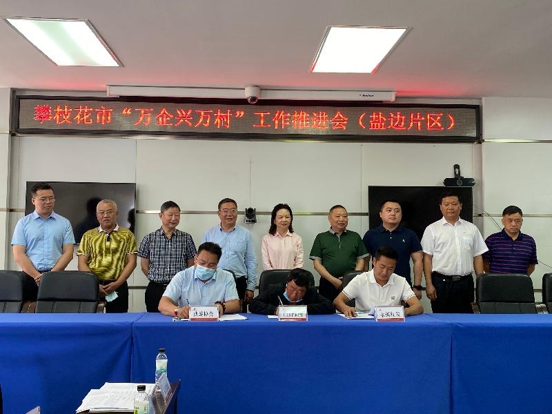 会上,龙佰矿冶、中丝天成、立新养殖等企业代表和渔门镇力马村、红宝乡干坪子村等支部书记代表做了表态发言。龙佰四川矿冶有限公司等村企代表上台签订《结对共建协议书》,17户企业与7个村现场签定了共建协议书。市农业农村局、市乡村振兴局、农行、农发行、邮储银行和攀枝花农商银行介绍了各自领域支持乡村振兴的有关政策并提出了工作建议。陈继川介绍了“万企兴万村”行动的社会背景和政治意义,传达了上级有关要求。