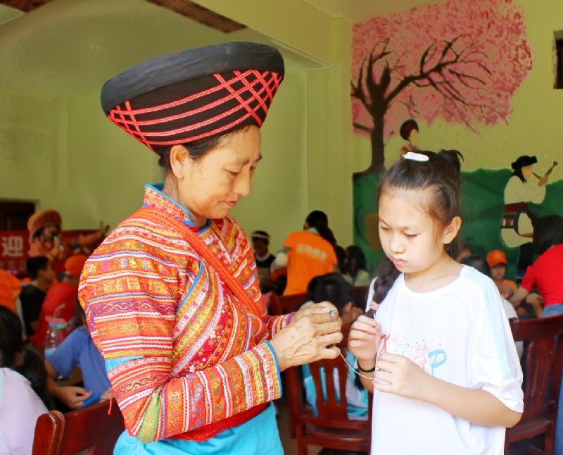 近日,盐边县傈僳族非物质遗产文化传习中心迎来了一批“小游客”,他们是四川省关工委组织的“四川省万名青少年夏令营东区分营”的50余名师生,今天他们将在这里感受傈僳族非遗文化的魅力。活动中,学生们参观了非物质文化遗产传习中心,一件件展品都激起了他们的好奇心,引得同学们惊叹连连,在讲解员的解说下,同学们更好地理解了展品中蕴含着的非遗文化,也切身感受到了傈僳族祖先们的伟大智慧。随后,在盐边县傈僳族非遗传承人的指导下,同学们“引针、穿线”,集中精力学习制作手工工艺品,每一件精心制作的物件背后都是同学们对非遗文化的弘扬。“芦笙一响,脚底板就痒”。在葫芦笙非遗传承人贺银清欢快的芦笙曲调下,同学们手牵着手踏着节奏跳起了舞蹈,每一个人的脸上都洋溢着欢乐的笑容,同学们都表示这一趟旅程收获满满,自己对非遗文化有了更深的理解。