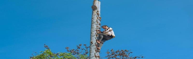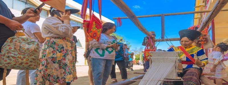 震撼的节目。“上刀山”体现傈僳族勇于攀登、不畏艰险的民族精神。蓝天白云之下,众目汇聚之处,激荡人心的锣鼓声中,傈僳族勇士拾刀级而上,赤脚爬上刀梯顶端,体现傈僳族勇于攀登、不畏艰险的精神,惊险刺激、惊心动魄,引得无数游客惊叹不已。“非遗展”为广大游客呈现了一场独具新山傈僳族特色的非遗文化盛宴,引来众多游客驻足观看,展示了傈僳族人民热爱生活、古朴自然的精神风貌和心灵手巧的手工技艺,承载了傈僳族人民绵延流传的千年文化。