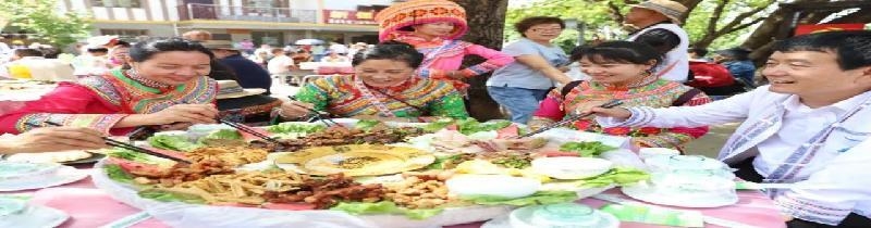 欢乐的氛围。随着傈僳欢歌的奏响,傈僳族同胞与游客们一起手牵手,来到广场中央,在轻快欢乐的歌舞中,跳起了约德节牵手舞蹈,歌声、笑声此起彼伏。熟腊肉、烤五花肉、凉拌鸡、油炸排骨、时蔬水果、五色杂粮……这是傈僳族款待最尊贵的客人时准备的美食。一个簸箕,盛满了傈僳族各式各样的原生态美味,游客们围坐一圈,品美食赏美景,惬意快活。