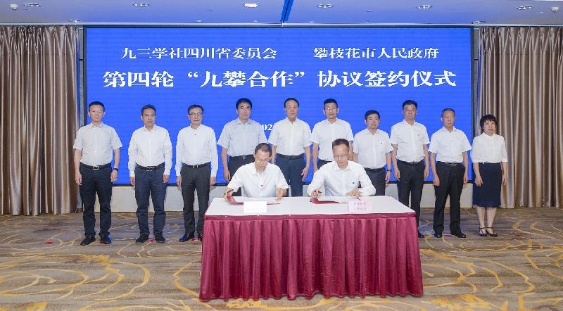 在有关领导的见证下,九三学社四川省委和攀枝花市人民政府进行了第四轮“九攀合作”协议签约。协议明确,九三学社四川省委将通过提供科技支持、引进项目及资金、培训技术人才等方式,重点推动同我市的科技创新、生态环境保护、文旅产业发展、农业现代化和乡村振兴等项目合作,助推攀枝花加快建设共同富裕试验区和川西南滇西北现代化区域中心城市。仪式上,授予了攀枝花中国三线建设博物馆“九三学社四川省委员会思想建设教育基地”牌匾。
