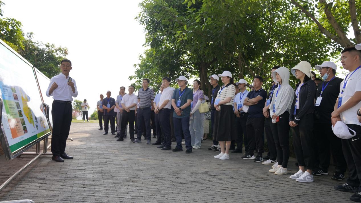 在青松林农业公园,县政府副县长侯锋对米易县安宁河流域“天府第二粮仓”建设及米易万亩稻菜轮作基地情况作了详细介绍,展示了米易红糖、黄瓜、辣椒、苦瓜、茄子、番茄、小番茄、小南瓜、丝瓜、新山梯田红香米、第三代杂交水稻(糃稻)等农特产品,大家参观了集农耕展示、科普旅游、观光健身、休闲娱乐等功能于一体的农业主题公园,一览了米易万亩“稻菜”轮作标准化生产基地。