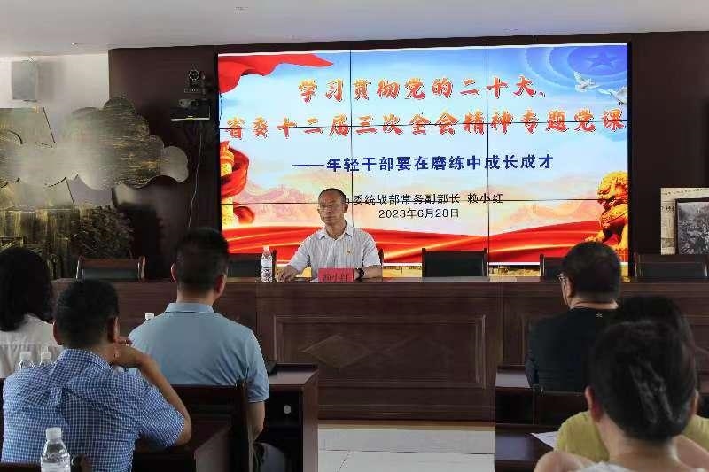 为庆祝中国共产党成立102周年,6月28日,市委统战部机关党支部、市民族宗教委机关党支部、西区区委统战部机关党支部在西区习风园、“火红年华”现场教学基地联合开展“传承艰苦奋斗传统、再谱火红年华篇章”主题党日活动。市委统战部常务副部长赖小红以“年轻干部要在磨练中成长成才”为题,给党员们讲了一堂学习贯彻党的二十大、省委十二届三次全会精神的专题党课。