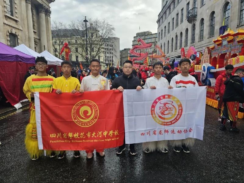 舞狮是我国民间传统艺术之一,每逢传统佳节或集会庆典,民间都以狮舞前来助兴。与以往的表演不同,今年在伦敦舞龙舞狮表演当中,南北不同的两派狮子舞,都同时登台表演。胡跃彬说,此次在伦敦庆贺2024甲辰龙年到来,老师和同学们都激动无比,用了近一个月时间专心筹备。学校带来的是北狮表演,这次还在选曲上别具一格,用上了攀枝花地方民族特色编曲《新山给洒嗯呱呱》,呈现出北狮大眼眨巴、萌态十足的表演,让现场观众直呼可爱,而南北两种舞狮同时出场,一活泼一威猛,也是让现场的英国观众们能够感受到中华文化的丰富多元。