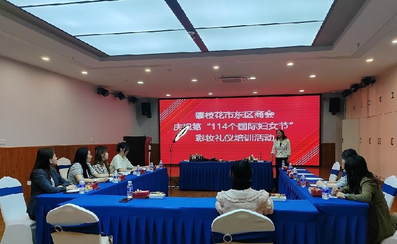 为庆祝第“114个国际妇女节”,丰富商会女企业家会员们的业余文化生活,增进彼此间的交流。3月5日,攀枝花市东区商会邀请商会女性执委、区委统战部(区工商联)全体女性职工,在攀花园职业技能培训学校开展礼仪、化妆培训活动。