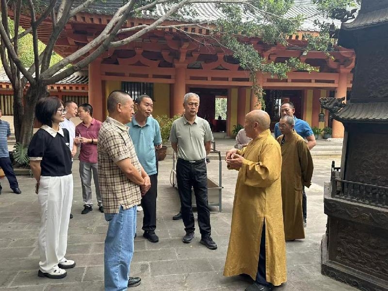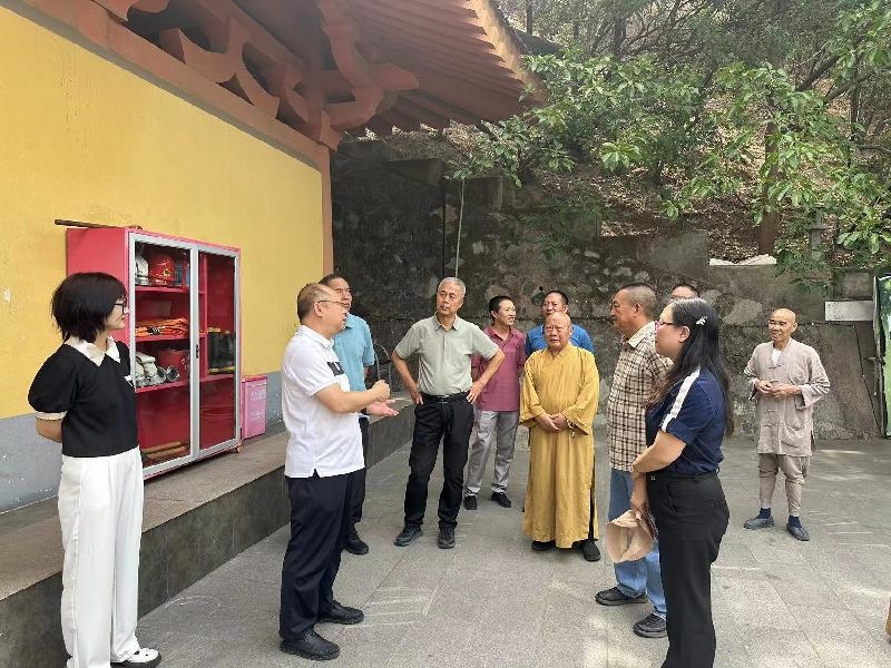 调研组一行来到东区玉佛寺,实地考察了场所规范化建设、消防设施配备及“明厨亮灶”改造等成果,详细了解了寺庙的历史沿革、制度建设、日常管理、宗教活动开展等情况,并与宗教界代表亲切交谈,询问存在的问题和困难。
