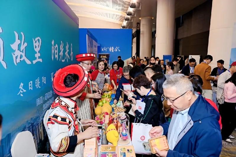 在推介会展区,米易特色展台成为全场焦点。鲜甜可口的枇杷、芭乐、七彩小番茄等特色水果,丰富的文创产品以及详尽的文旅资料和置业指南,吸引众多嘉宾游客驻足。来自成都的游客唐娟说:“作为米易的‘老朋友’,那里温暖的阳光和清新的空气总是让我念念不忘,我们一家正计划到米易置业养老。”